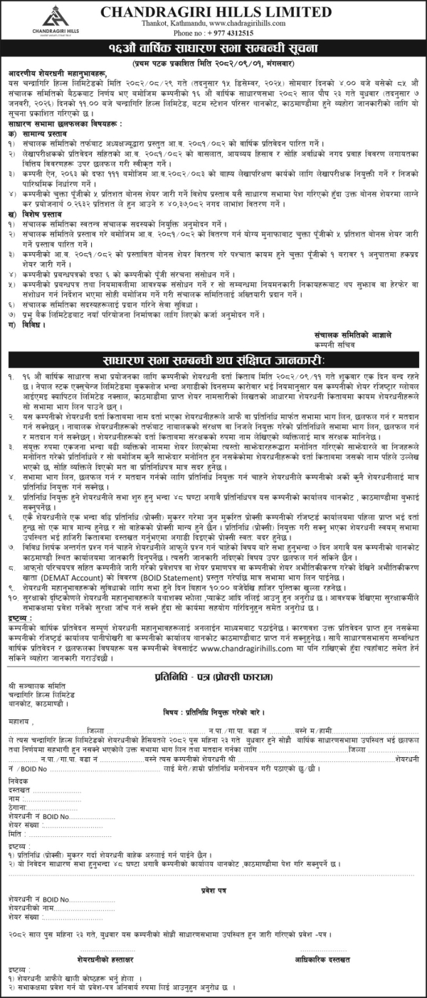 १६ औं वार्षिक साधारणसभा सम्बन्धी सूचना